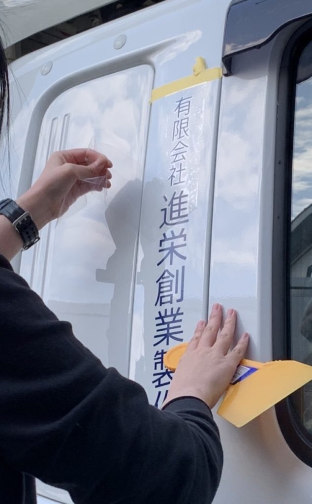 ステッカーは事務グループで仕上げました
