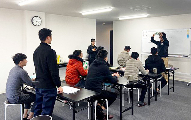 技能実習生に対して、基本的な学習や実習先でスムーズな生活を行うための研修を行います。