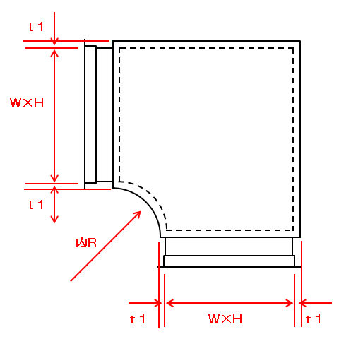 縦補強 – 内部に人が入れるほど大型のダクトでは、気流方向にもアングル鋼などを取り付ける場合がある。